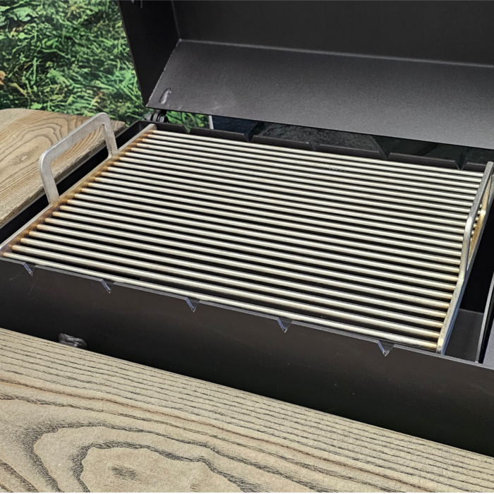 Pakettiin kuuluu: 2x grillihiililaatikko, Wok-pannun teline, 2x grilliritilä, ruostumatonta terästä